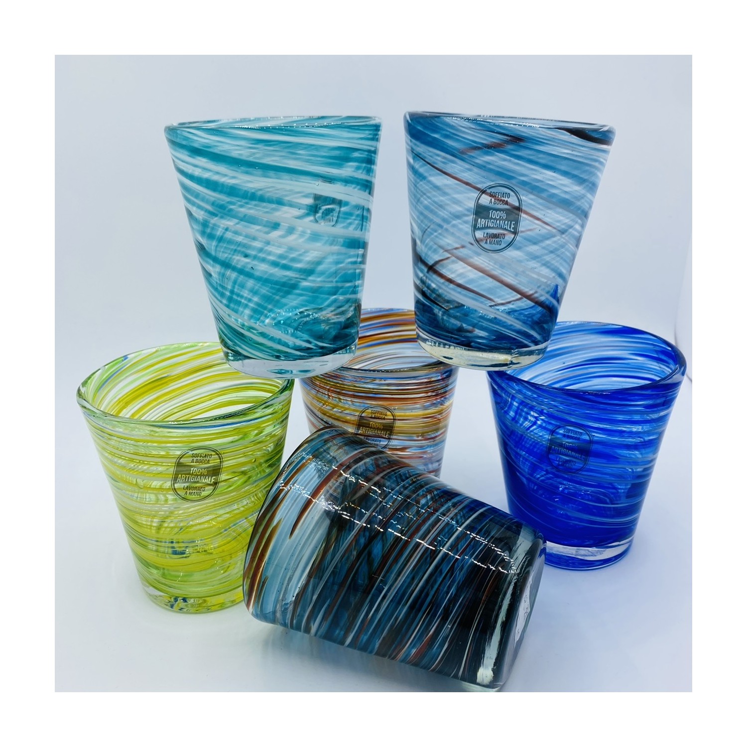 Linea di bicchieri in vetro soffiato a bocca, 100% artigianali, lavorati a mano.