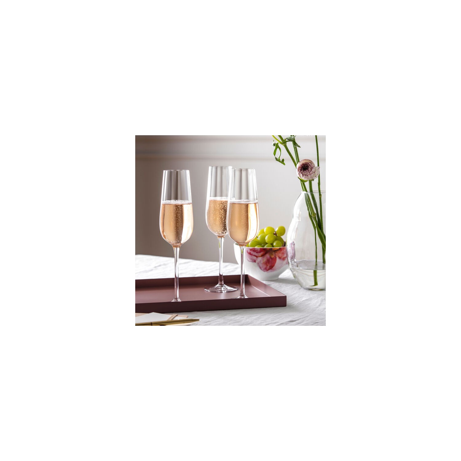 I flute di Rose Garden mettono in risalto alla perfezione il gusto frizzante dello spumante e dello champagne. Servite uno spumante frizzante per una festa.