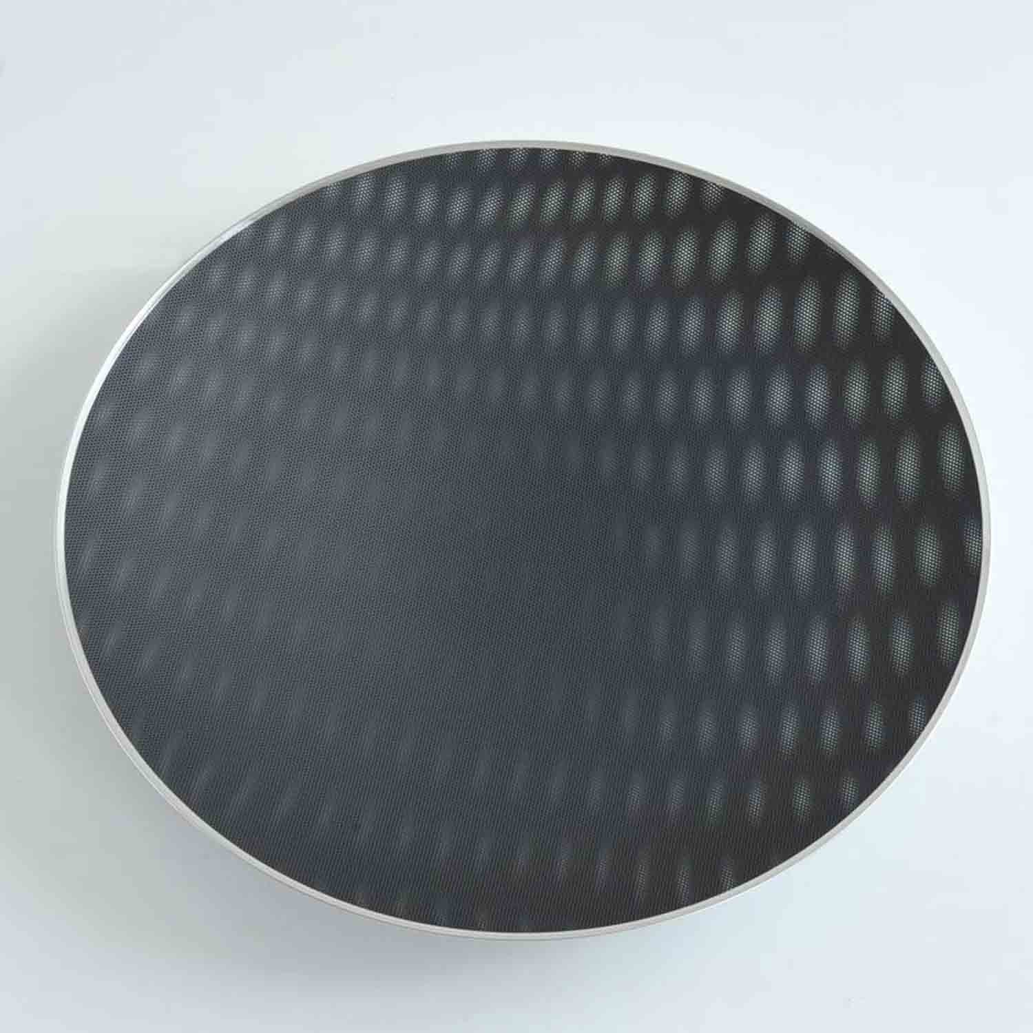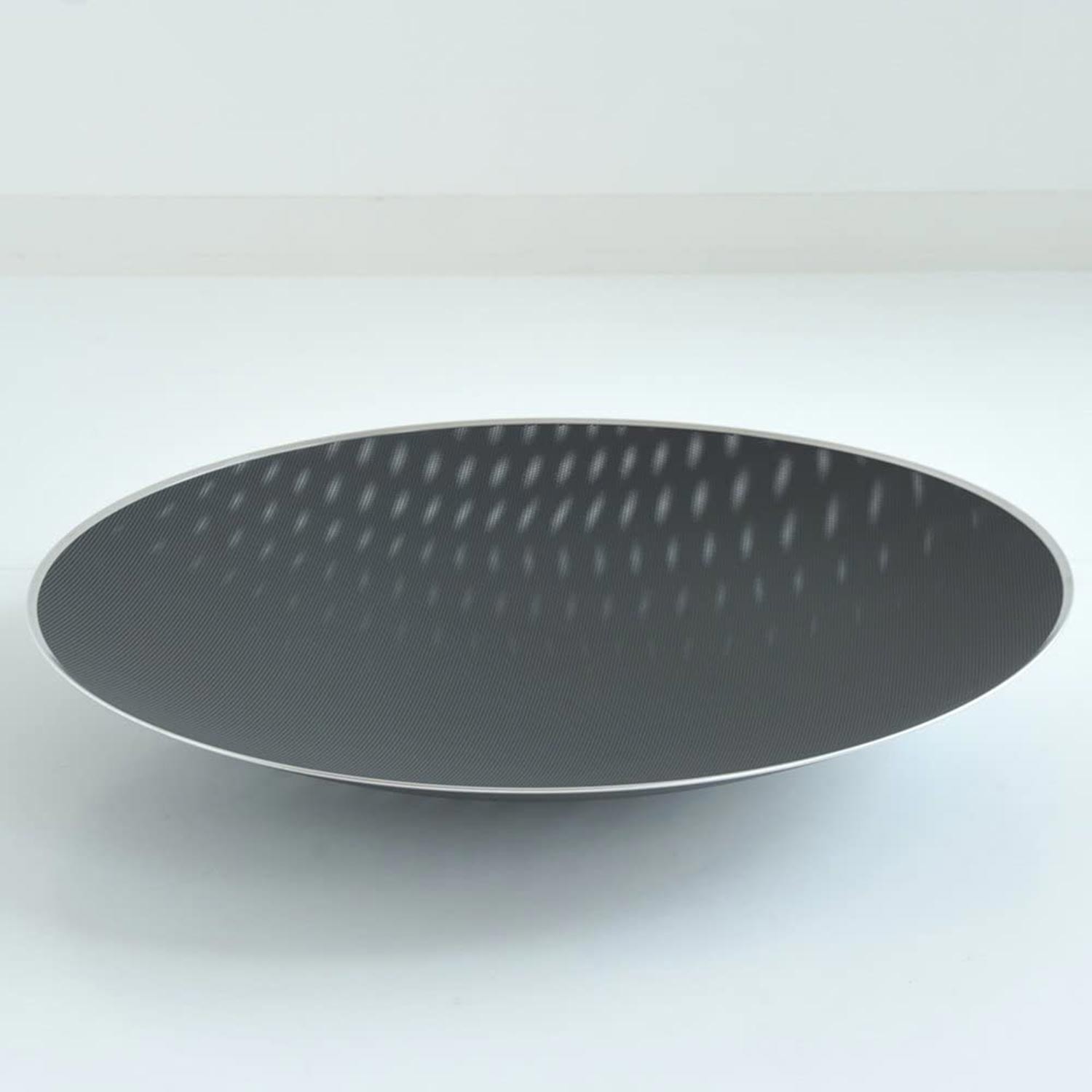 Cohncave - Centrotavola traforato in acciaio colorato con resina epossidica, blu e avorio. Alessi 100 Values Collection.