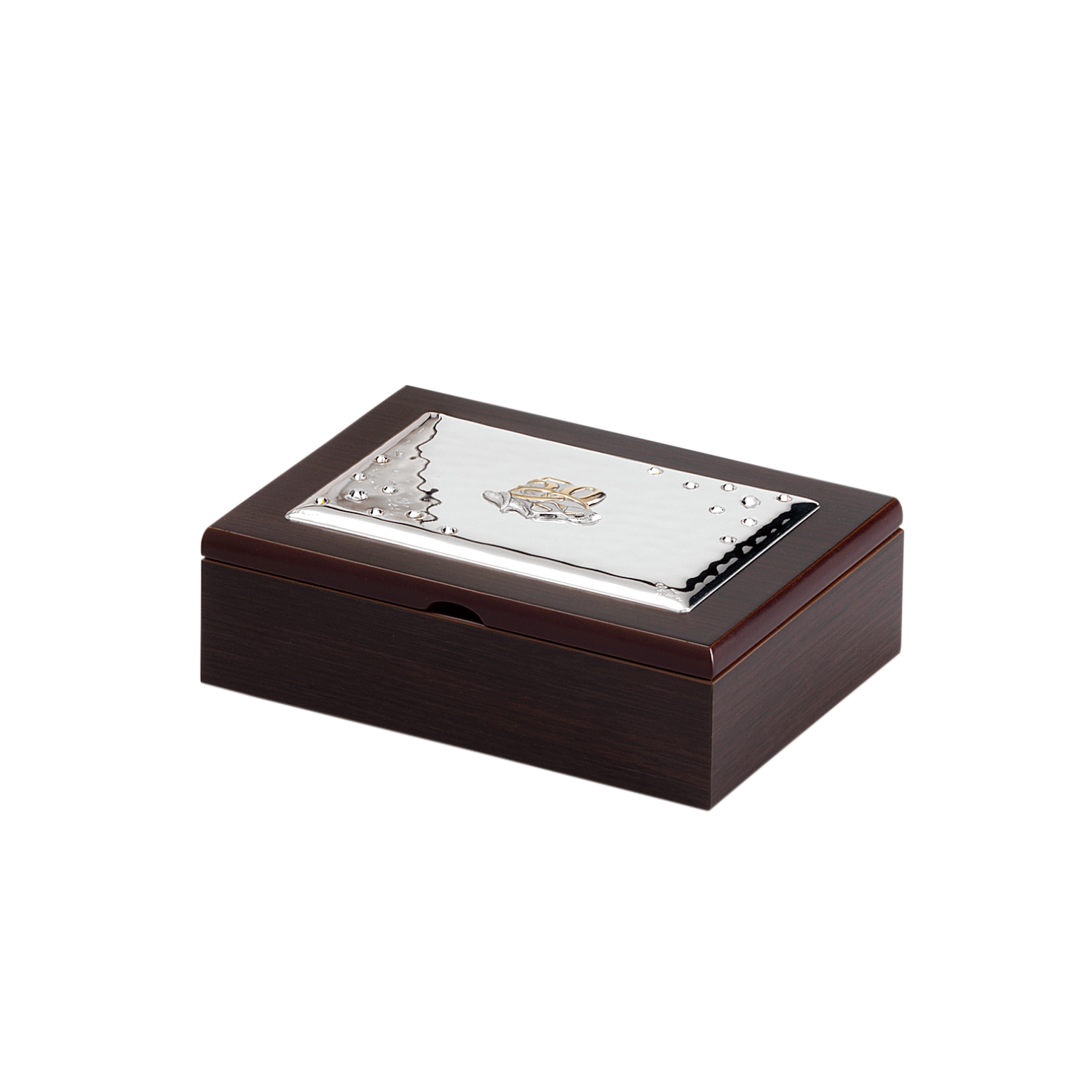 Cofanetto per il 50esimo Anniversario 19x14cm in Argento con applicazione di Strass.
