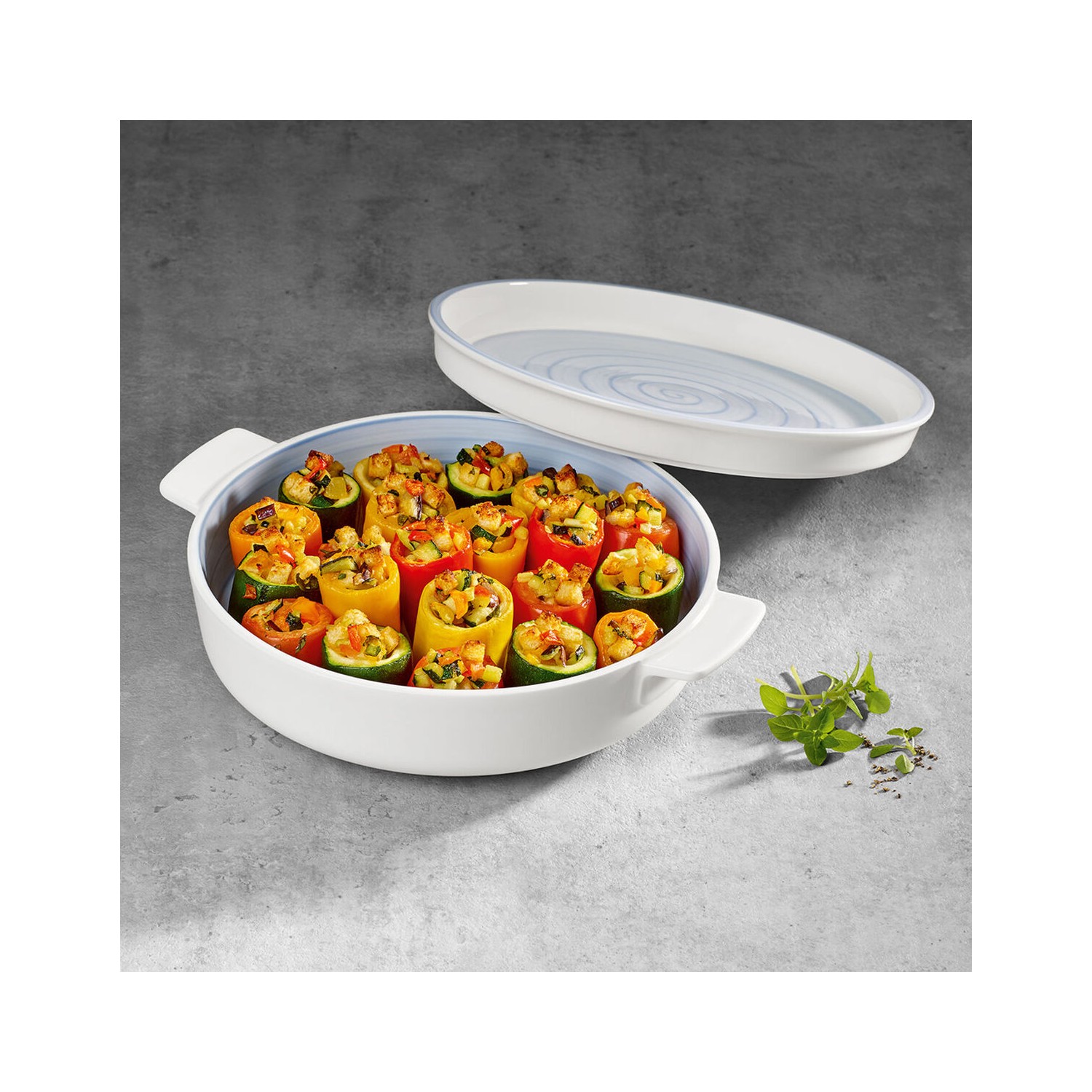 Clever Cooking è la pratica collezione per chi è appassionato di cucina e che ama allietare amici e familiari con le proprie creazioni. Preparare, cuocere e servire con le teglie di alta qualità in bellissimi colori armoniosi è un vero piacere ancor prima di mangiare. La teglia da forno multifunzione in Premium Porcelain dipinta a mano in blu è perfetta per preparare dolci e sformati ma anche per servire e conservare. Grazie a una speciale smaltatura, le teglie Clever Cooking sono facilissime da pulire. I residui di cibo si staccano quasi da soli. Cucinate con passione e con le porcellane di Villeroy & Boch.