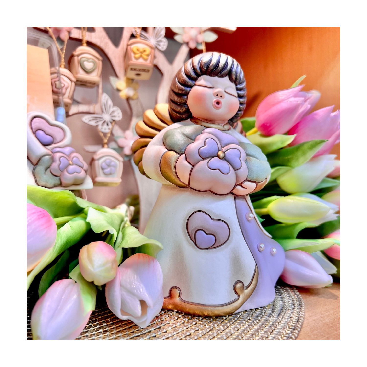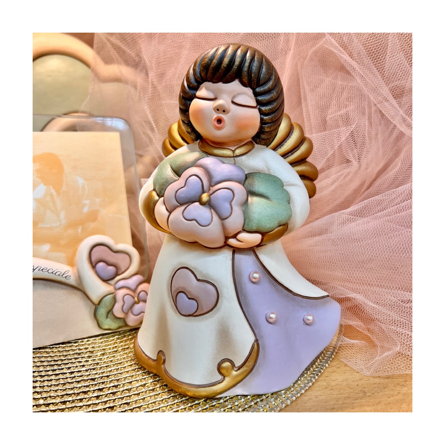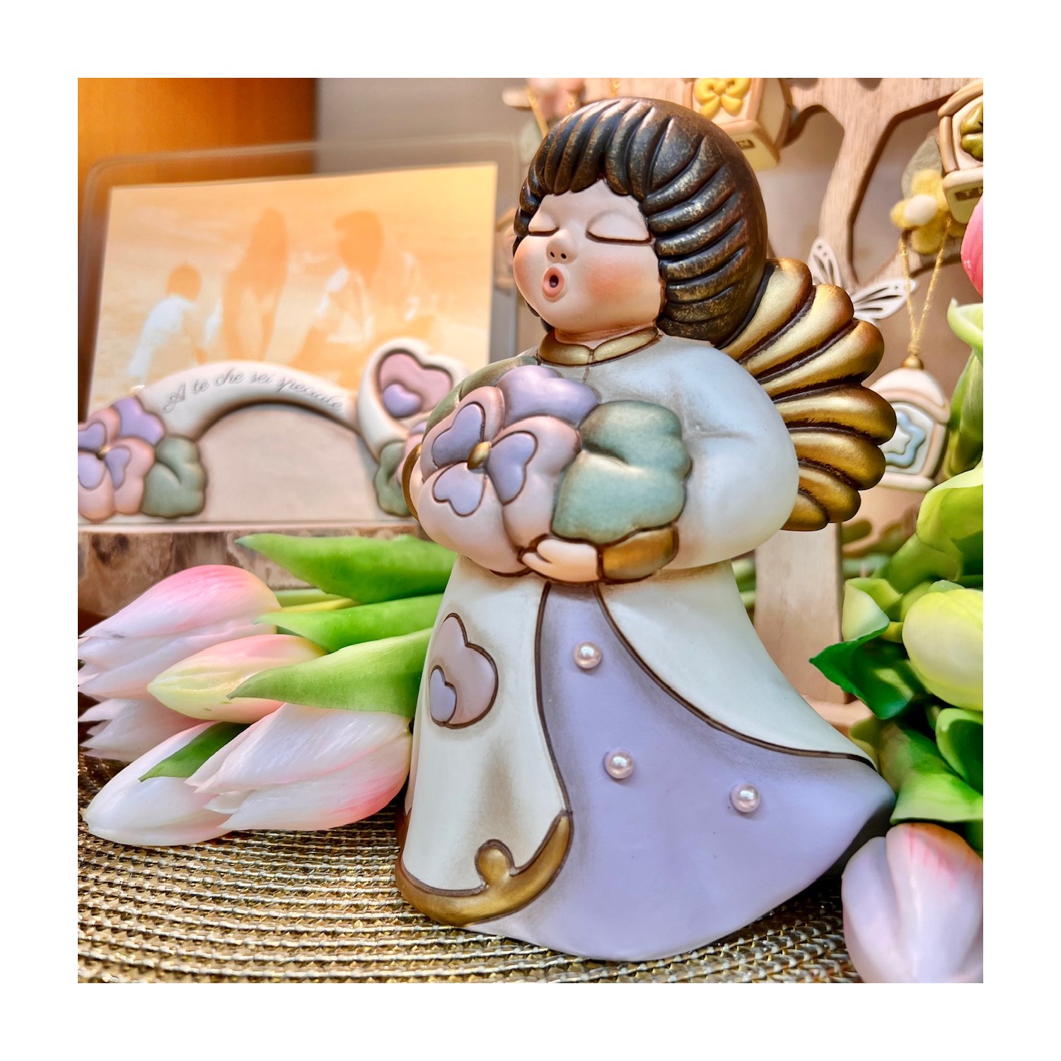 Un Angelo della Mamma 2026 strepitoso!! Delicati colori pastello, una Viola del Pensiero come suggello di amore e ricordo, leggere gocce di rugiada che accarezzano la veste.