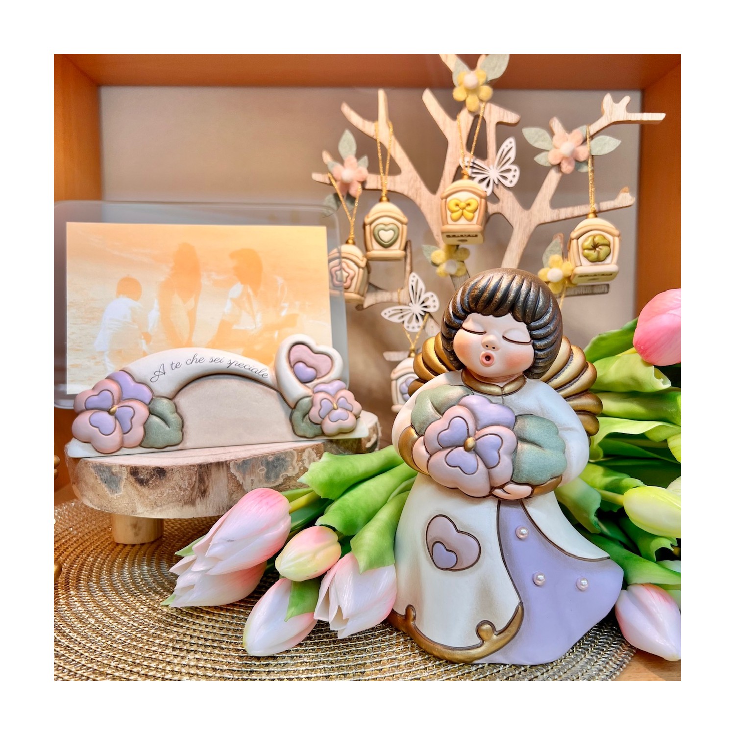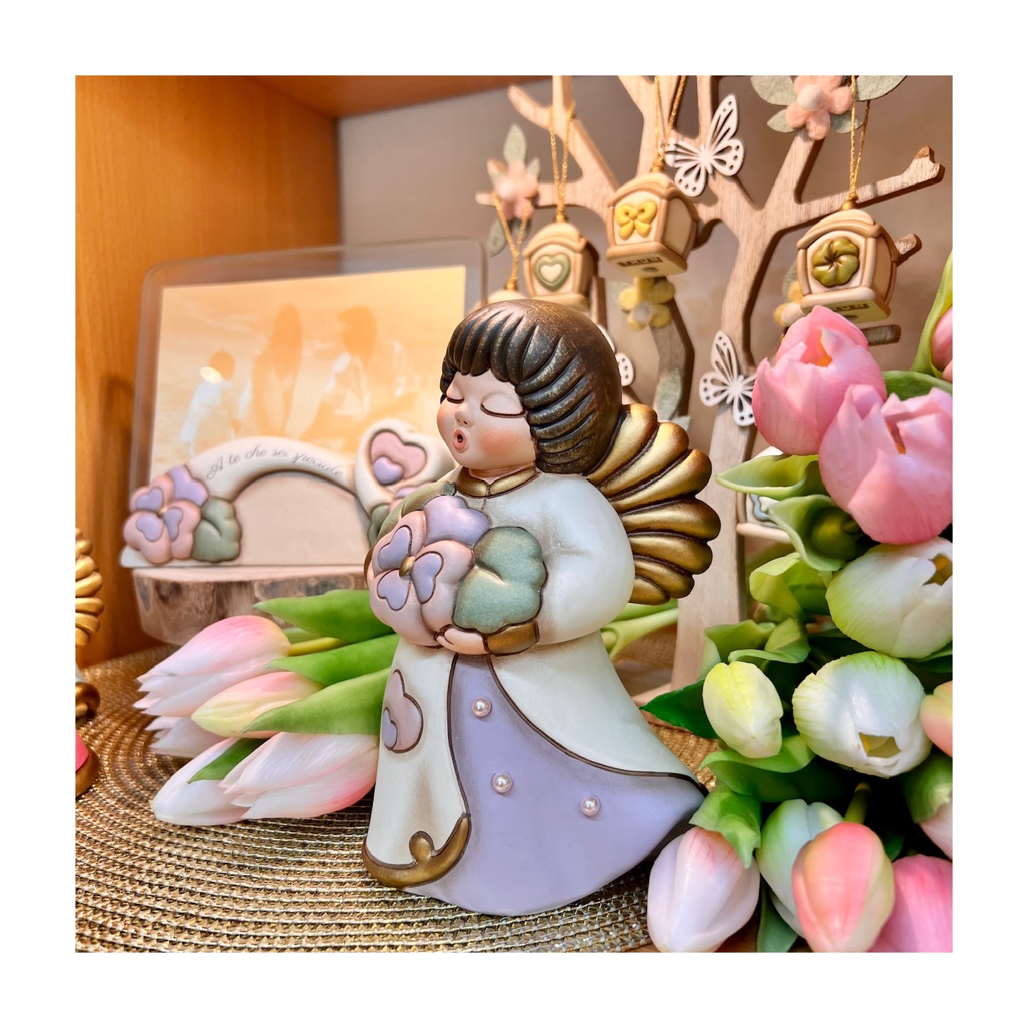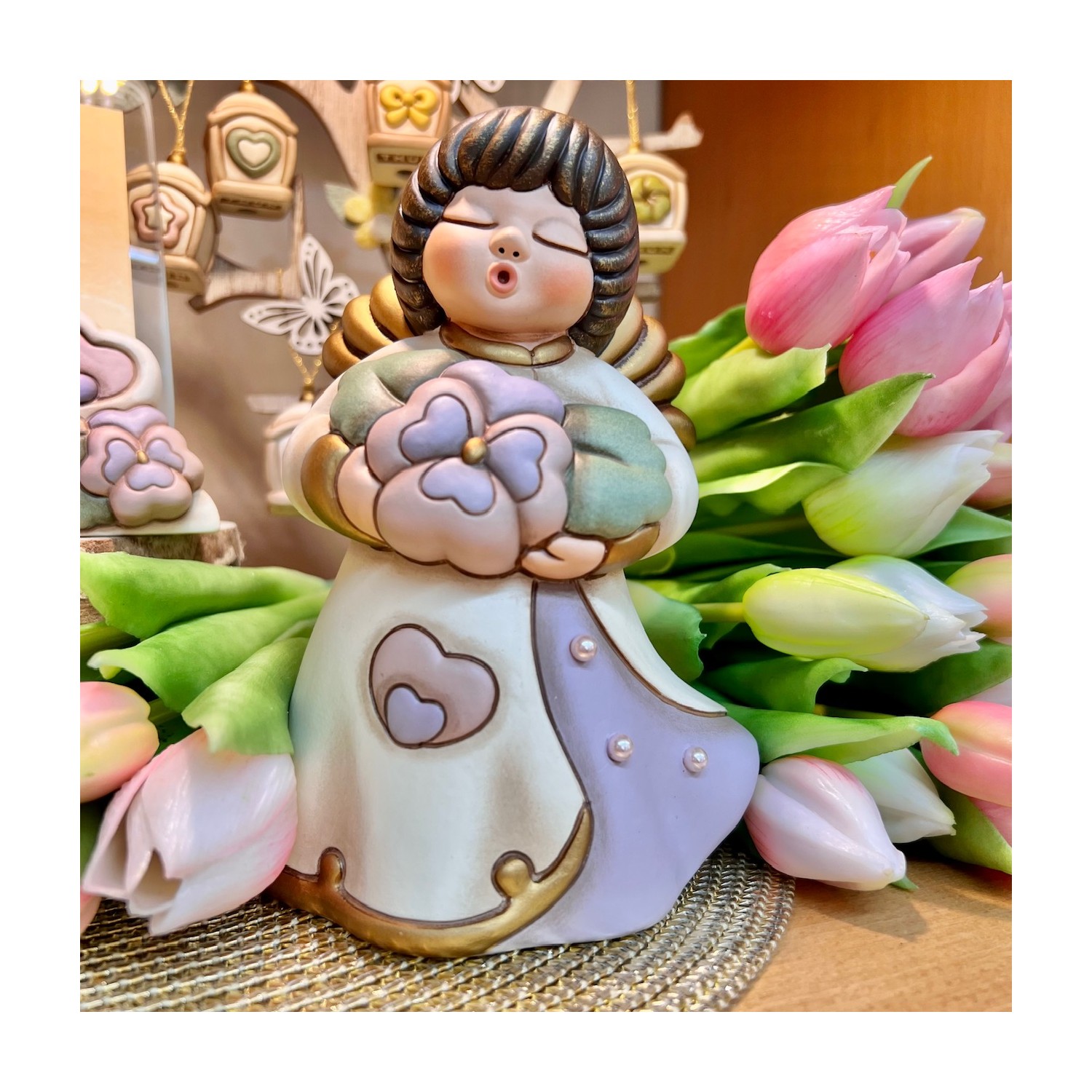 Un Angelo della Mamma 2026 strepitoso!! Delicati colori pastello, una Viola del Pensiero come suggello di amore e ricordo, leggere gocce di rugiada che accarezzano la veste.