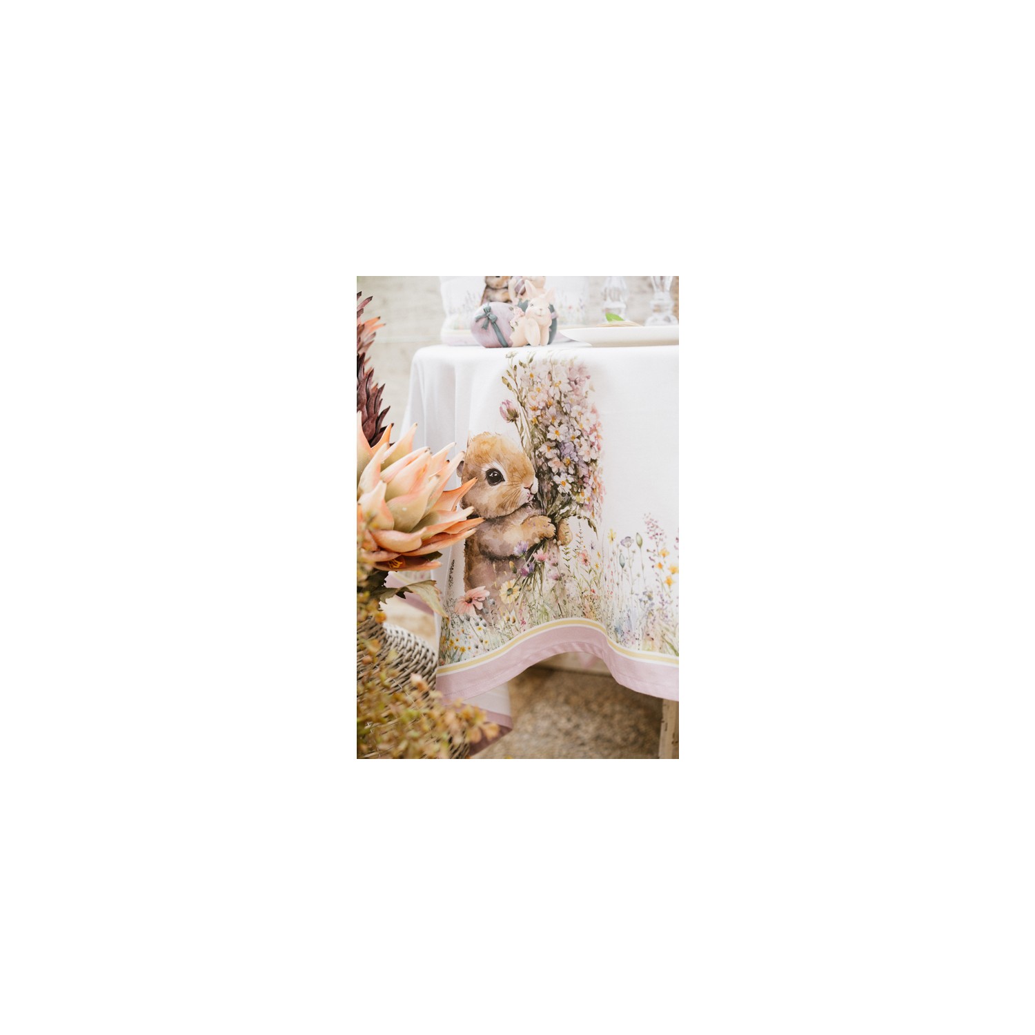 Un coniglietto dallo sguardo tenero tenero, tenui colori pastelli e una mazzo di bellissimi fiori di campo rendono magica la nuova collezione Primavera di Nuvole di Stoffa!