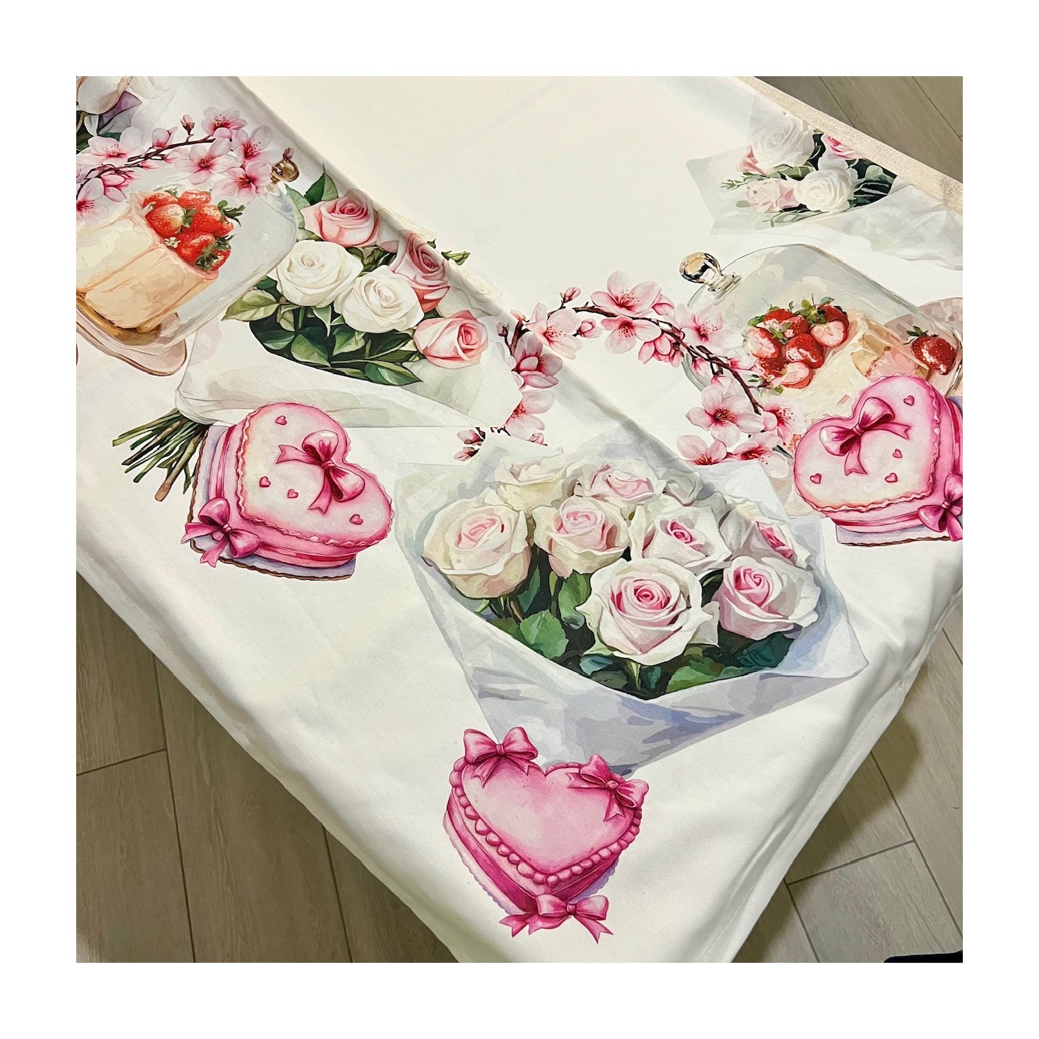 Tovaglia Rose, Cuori e Dolcezze 150X250cm