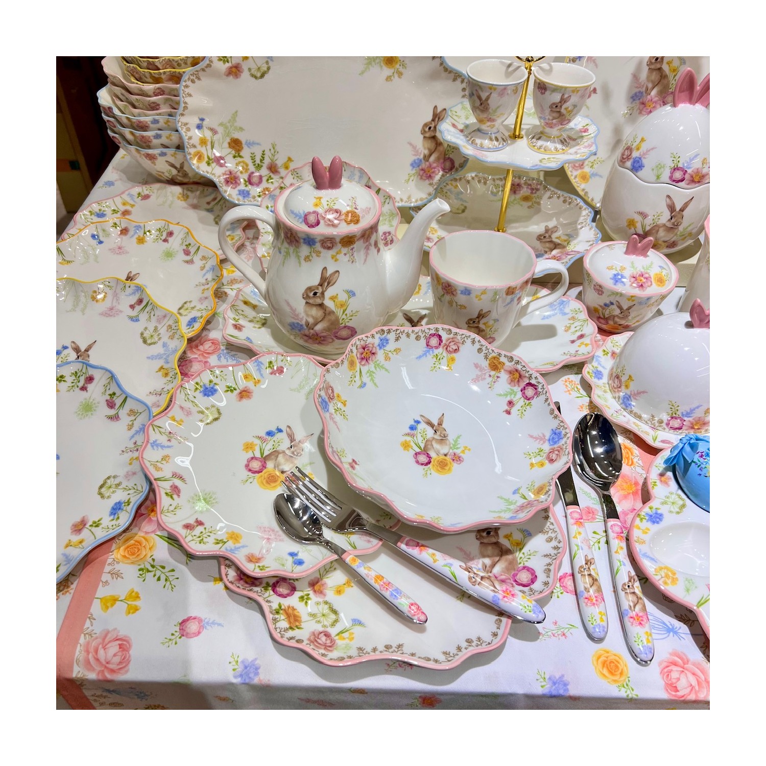 Easylife - Tres Jolie Servizio 2 posti tavola Coniglietti in fiore!
