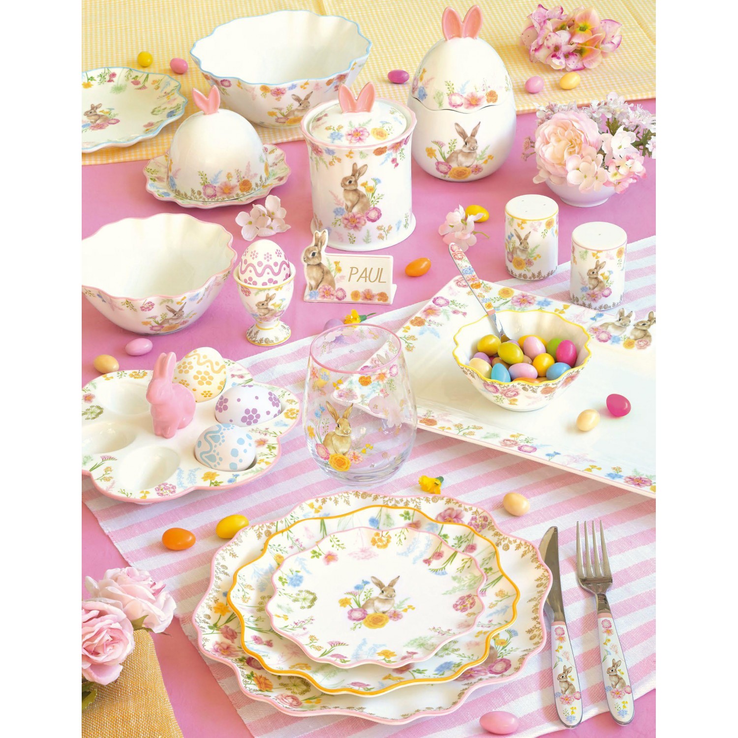 Un prato fiorito, pieno di gioia, Coniglietti dolci e pensieri buoni! Una collezione dalle tinte pastello per animi allegri!