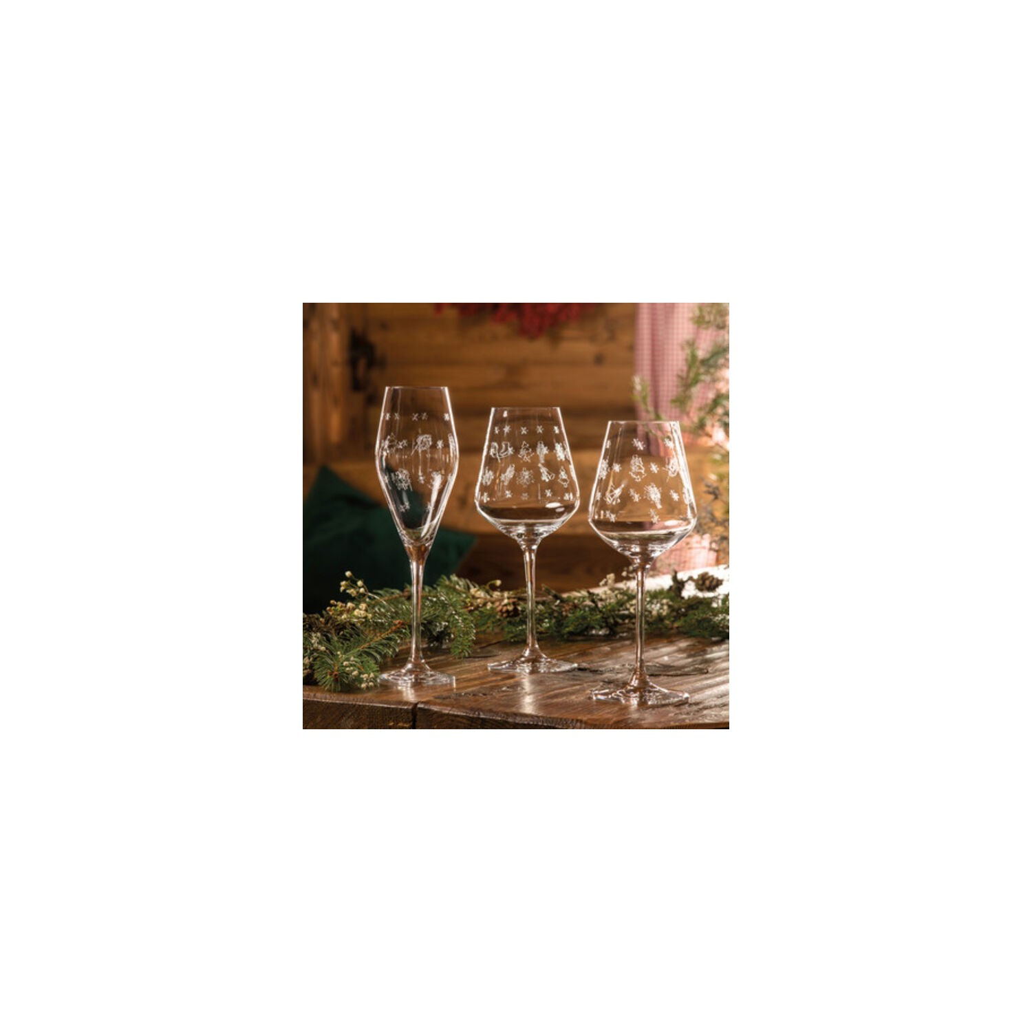 380ml, in cristallo decorato, lavabili in lavastoviglie.