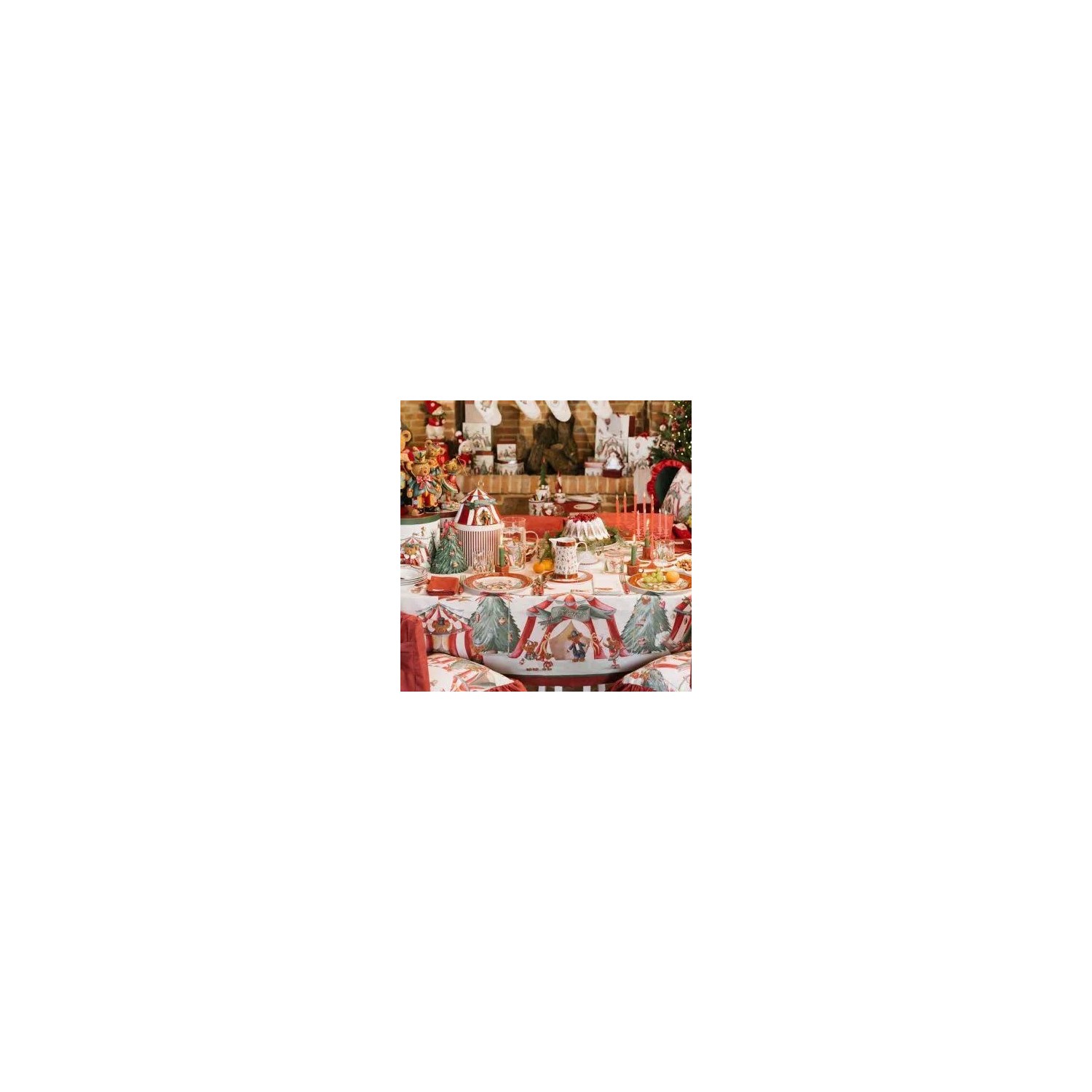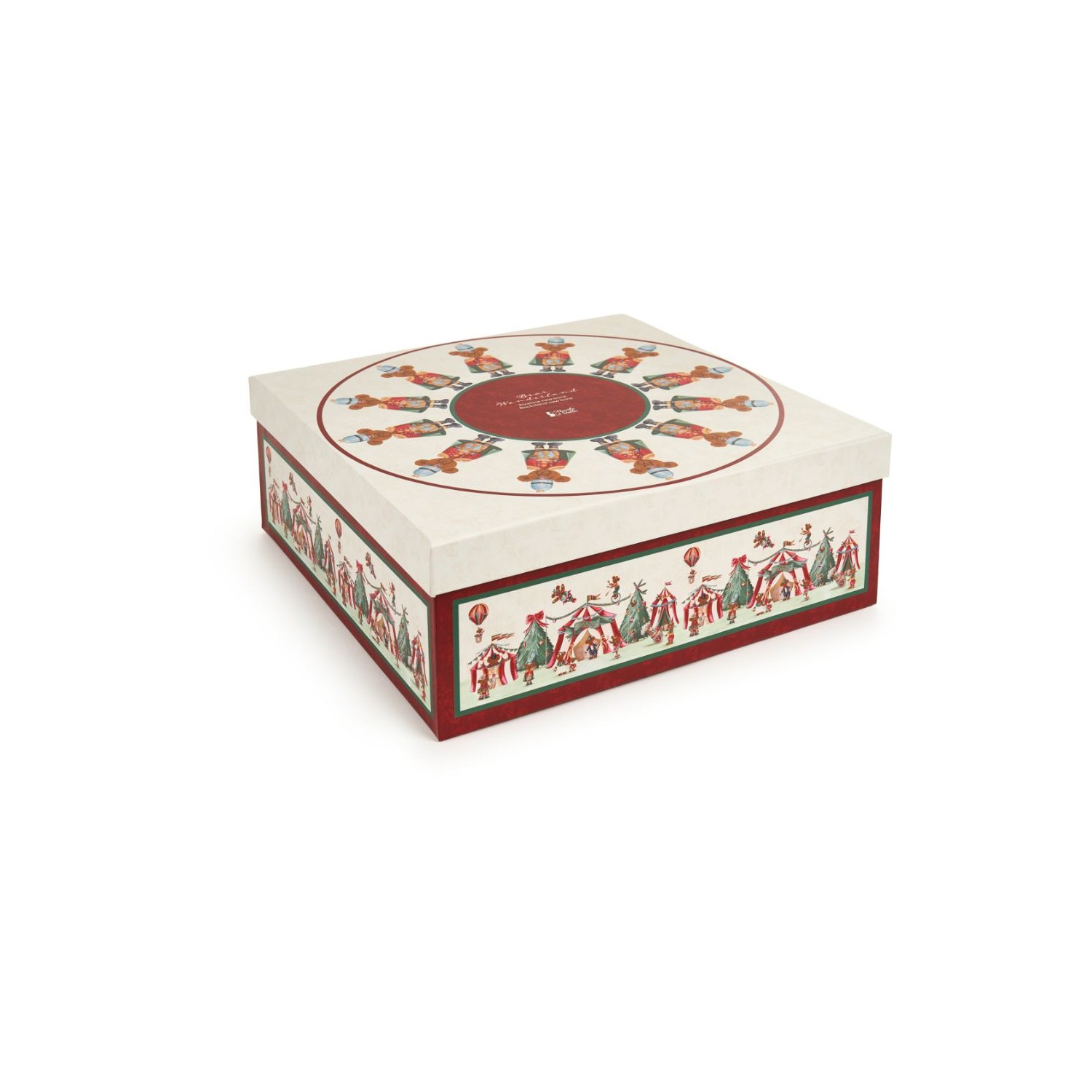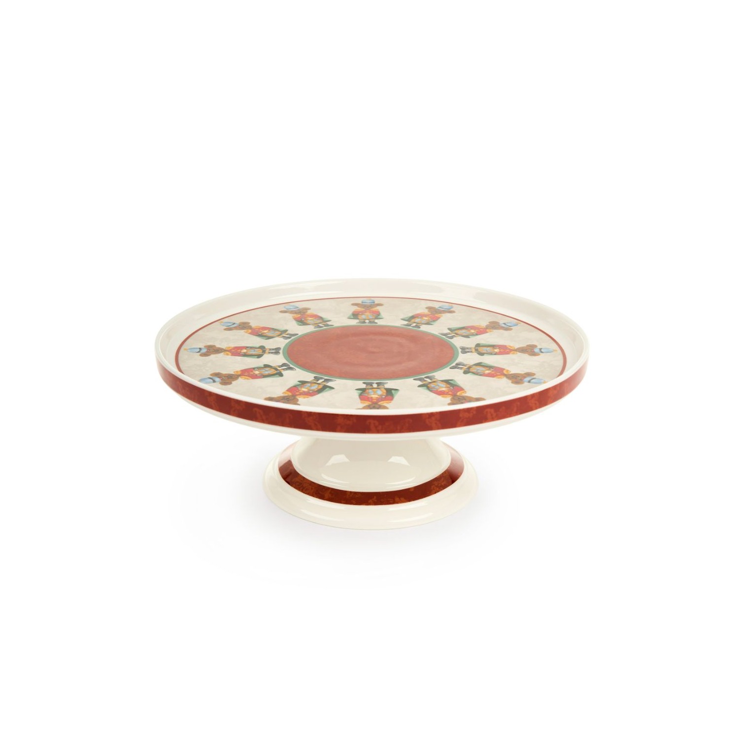 Alzatina natalizia in porcellana morbido color avorio con bordi rossi, sulla base tanti orsetti della collezione Bear Wonderland.