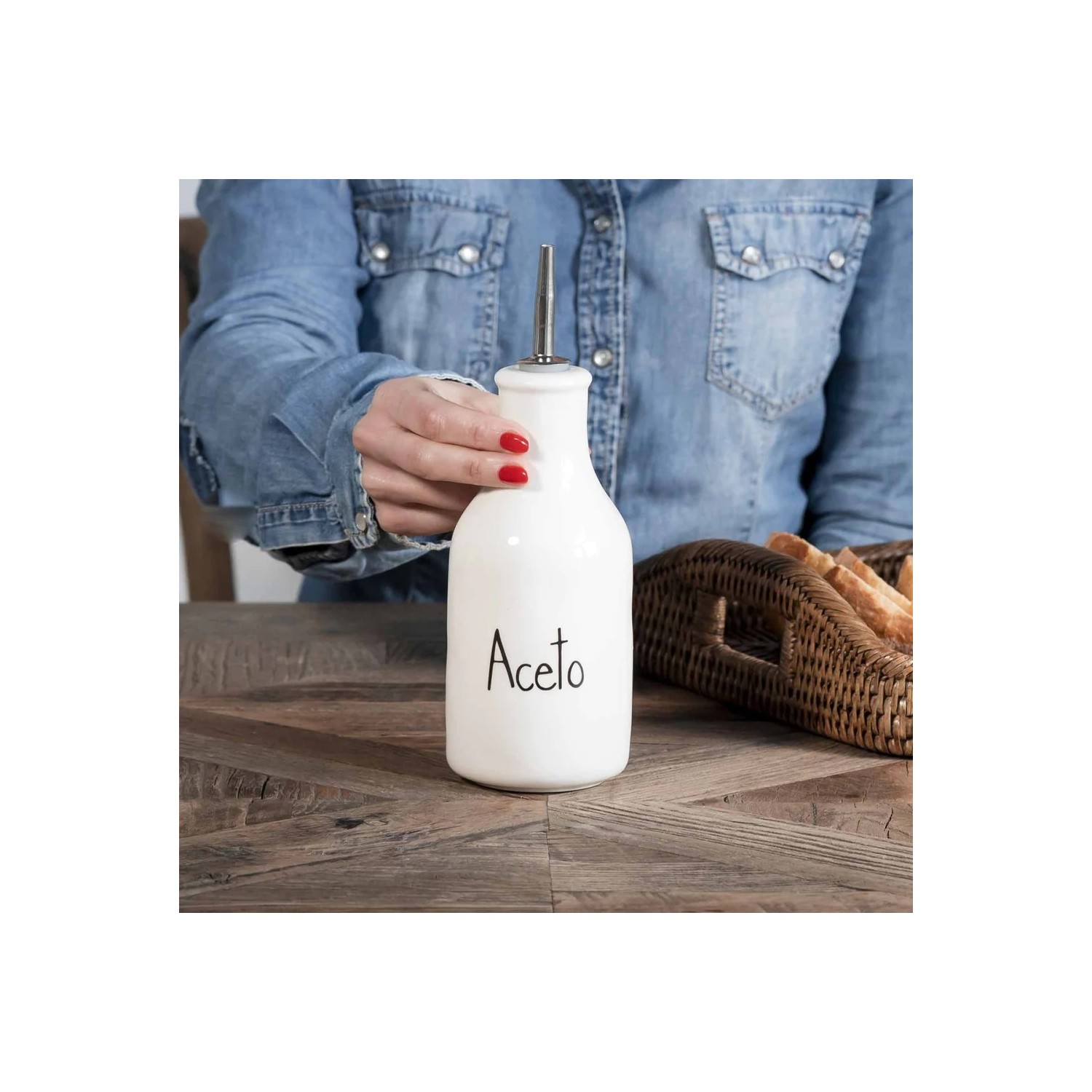 La forma minimale e il decoro Aceto sono l'ideale per adattarsi sia sulle tavole più eleganti che su quelle di tutti i giorni. Può essere anche un'idea regalo essendo un accessorio utile in ogni cucina