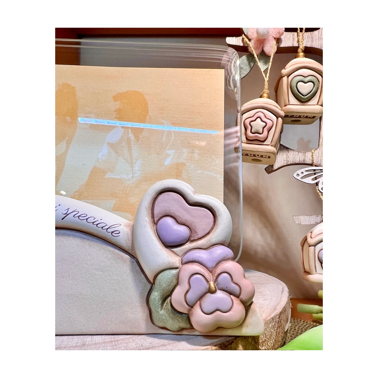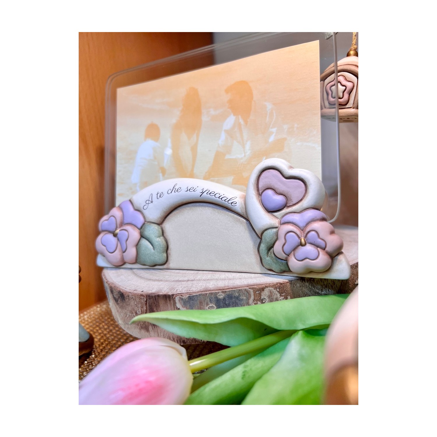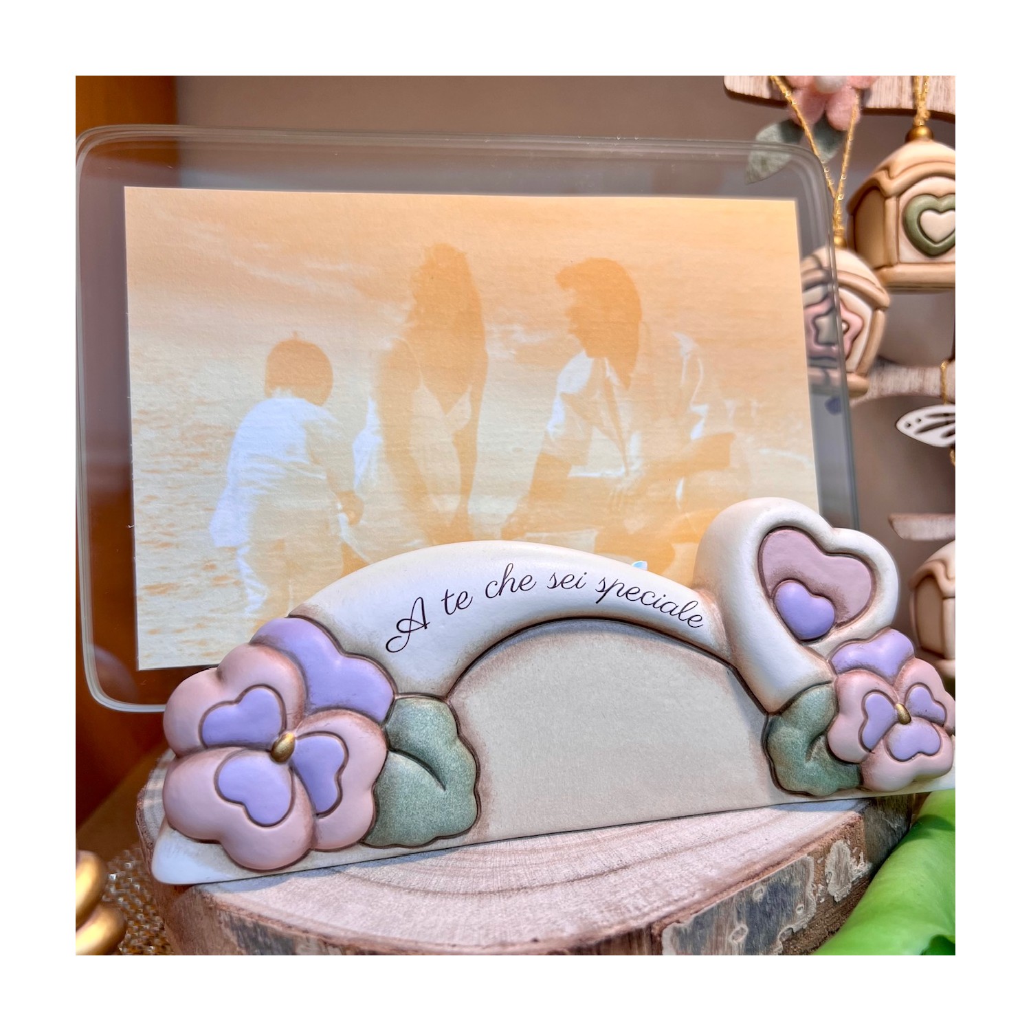 Un Angelo della Mamma 2026 strepitoso!! Delicati colori pastello, una Viola del Pensiero come suggello di amore e ricordo, leggere gocce di rugiada che accarezzano la veste e questo è il suo portafoto in abbianato: A Te che sei Speciale! Bellissimo!