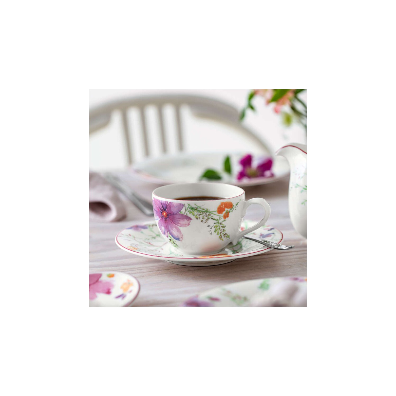 I delicati colori di Mariefleur faranno nascere sulla vostra tavola un mare di fiori in blu e grigio. Le forme eleganti e sinuose della porcellana permettono di preparare e servire i vostri piatti con una grazia tuttora ineguagliata. La zuccheriera è ideale per completare una tavola allestita a festa per un caffè o un tè. Addolcite con stile il vostro caffè o tè.