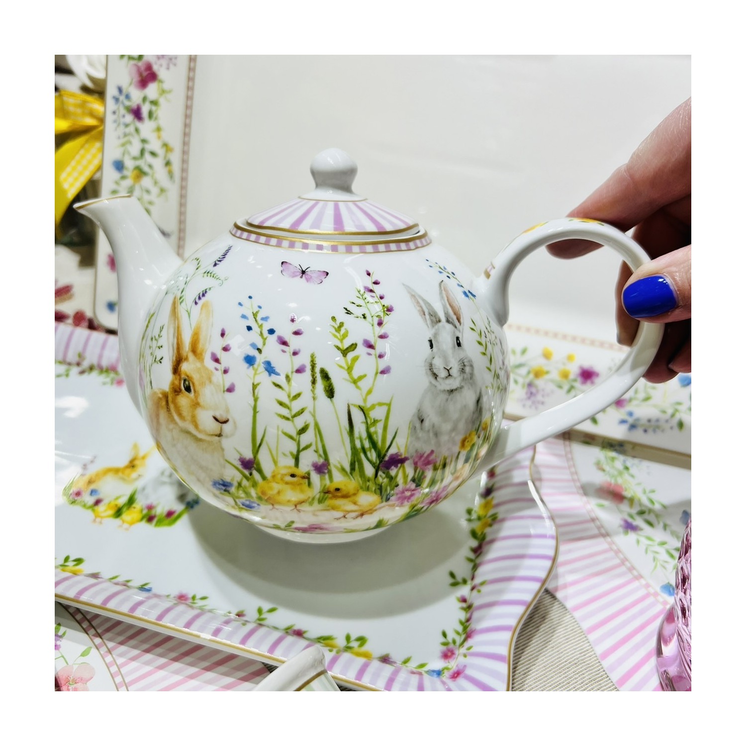 Easylife - Happy Easter Teiera con filtro per il tè in porcellana 1litro