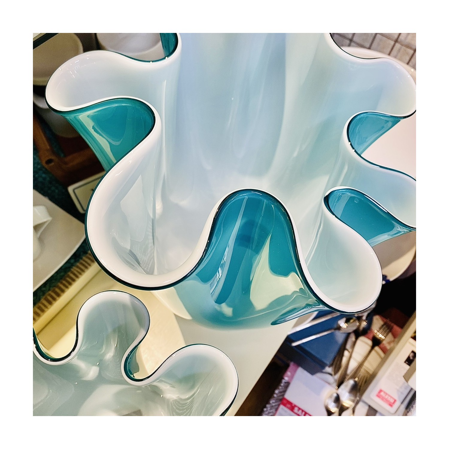 Onlylux - Vaso Wave Opale e Turchese h40 in vetro soffiato